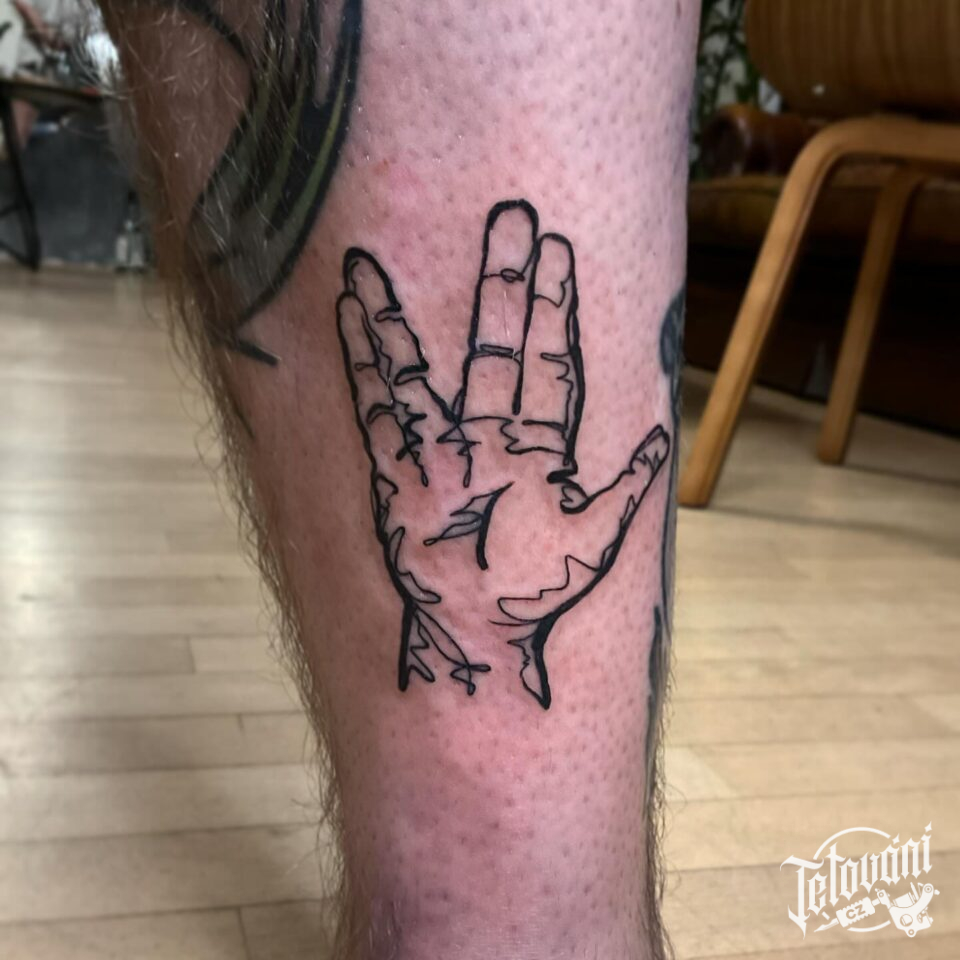 Tetování znaky a symboly, ruka, symbol ochrany na holeni
