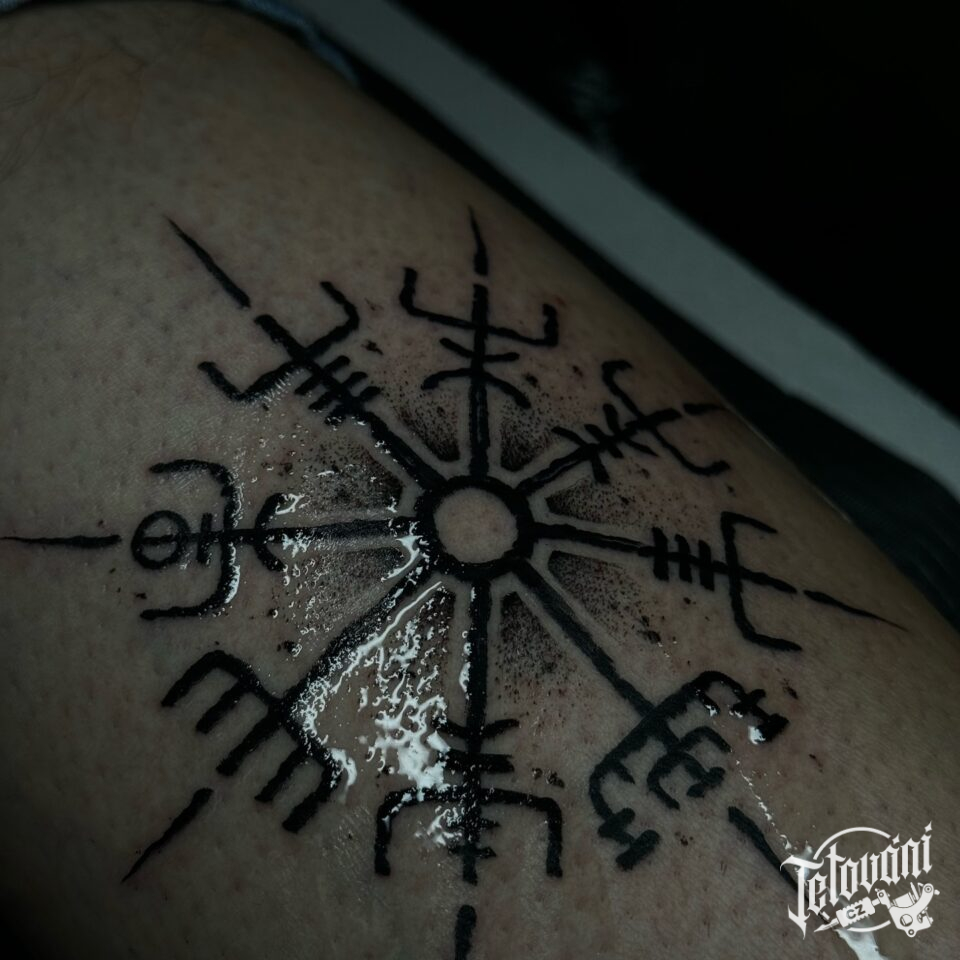 Tetování znaky a symboly, runa kompas na lýtko
