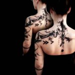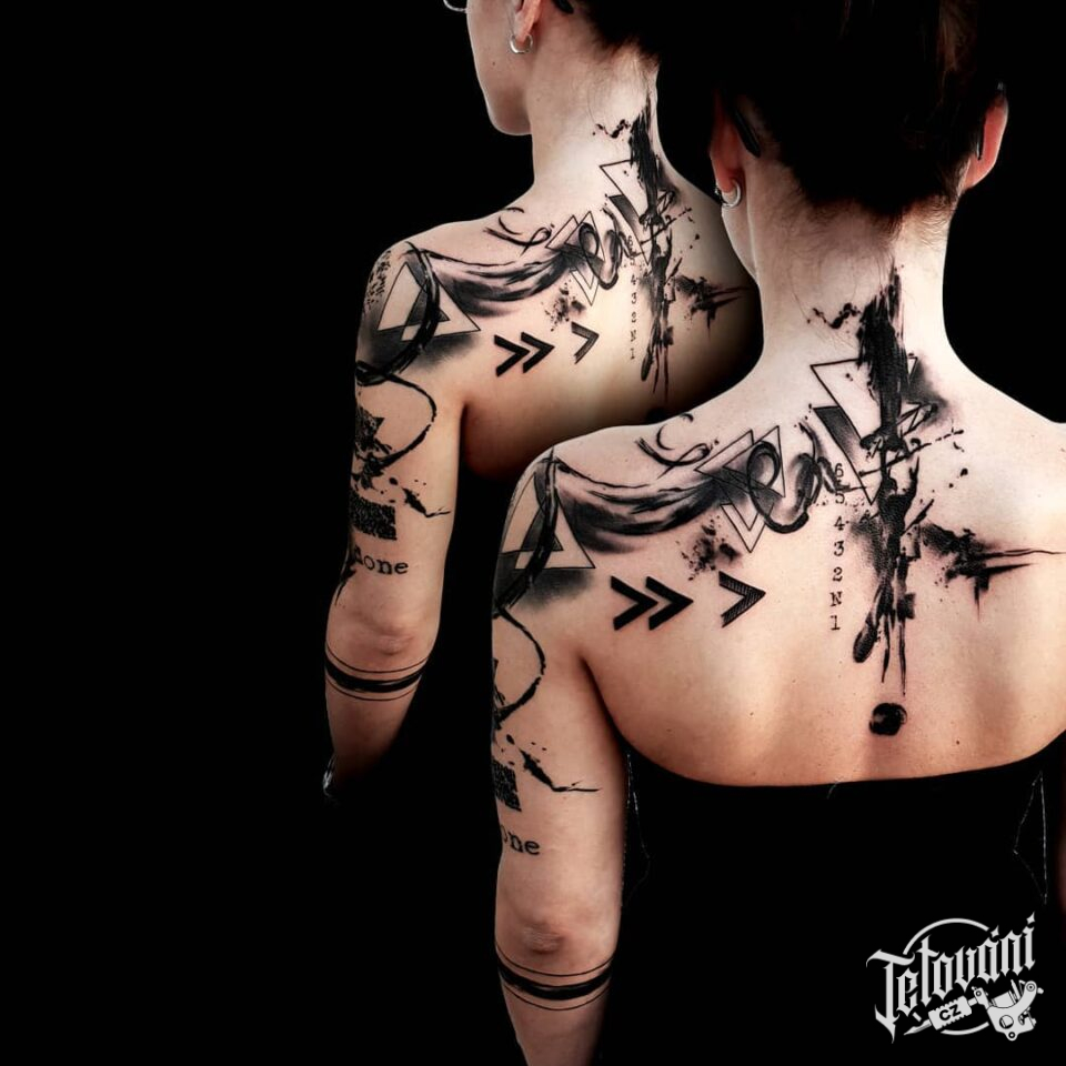 Tetování znaky a symboly, šipky, čísla, tvary na zádech