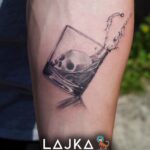 Tetování znaky a symboly, sklenička a lebka na předloktí