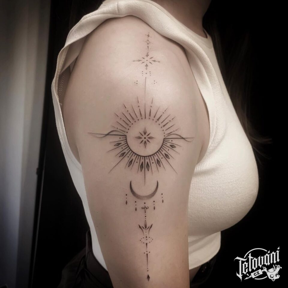 Tetování znaky a symboly, Slunce, Měsíc na rameni