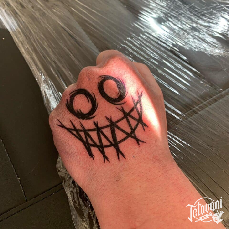 Tetování znaky a symboly, smajlík na hřbet ruky