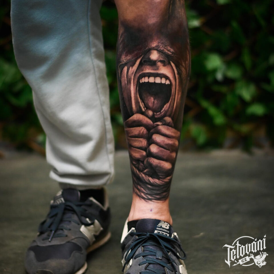 Tetování znaky a symboly smutku na holeň