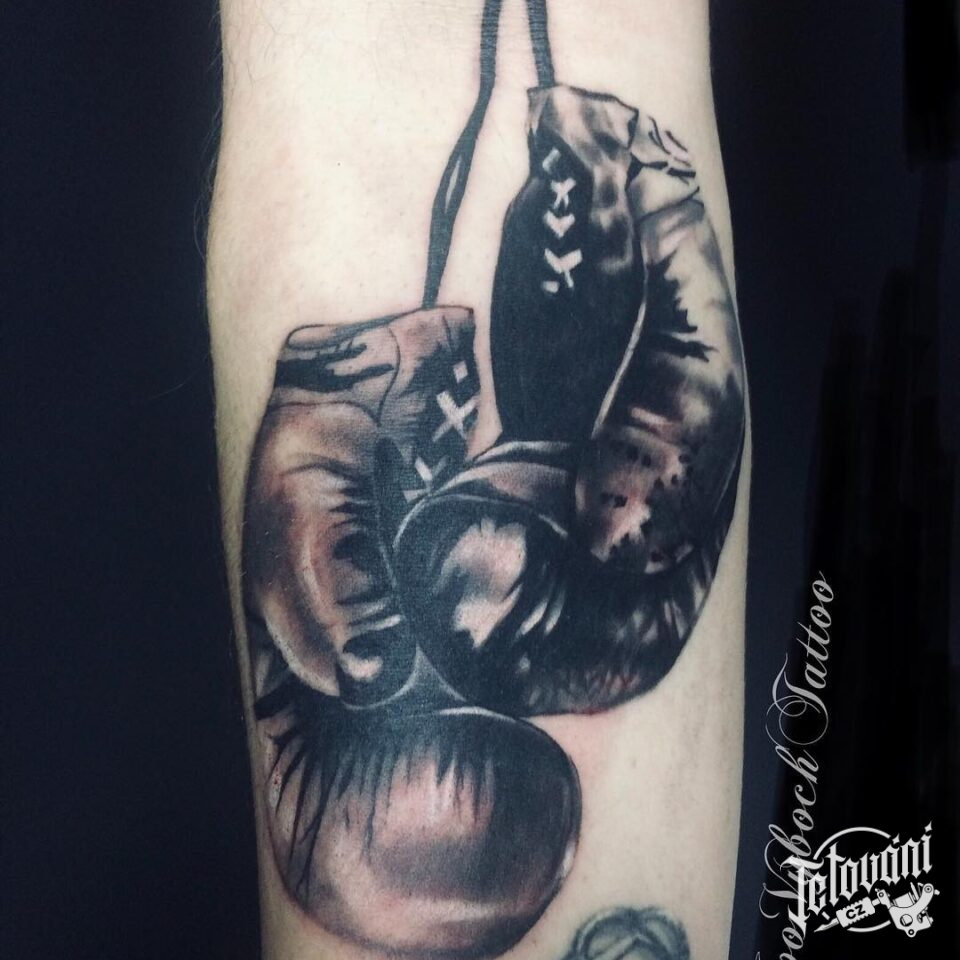 Tetování znaky a symboly sportu box na předloktí