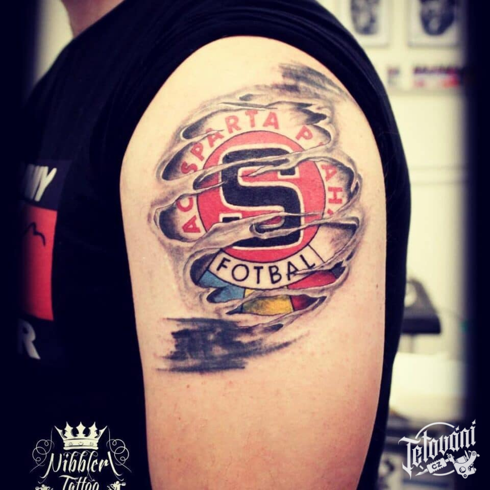 Tetování znaky a symboly sportu fotbal, sparta na rameno