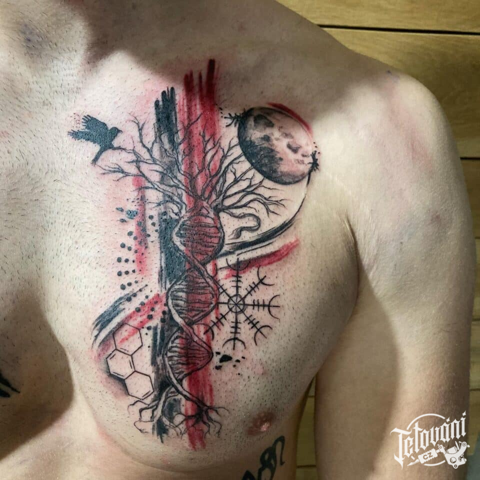 Tetování znaky a symboly, strom na hrudi