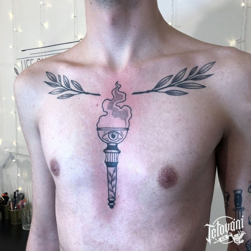 Tetování znaky a symboly, svobody, pochodeň na hrudníku