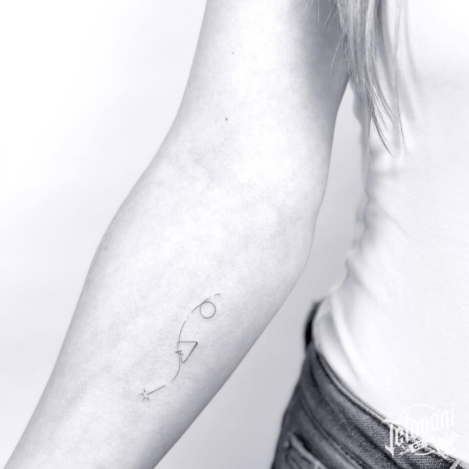 Tetování znaky a symboly, symbol, čára na předloktí