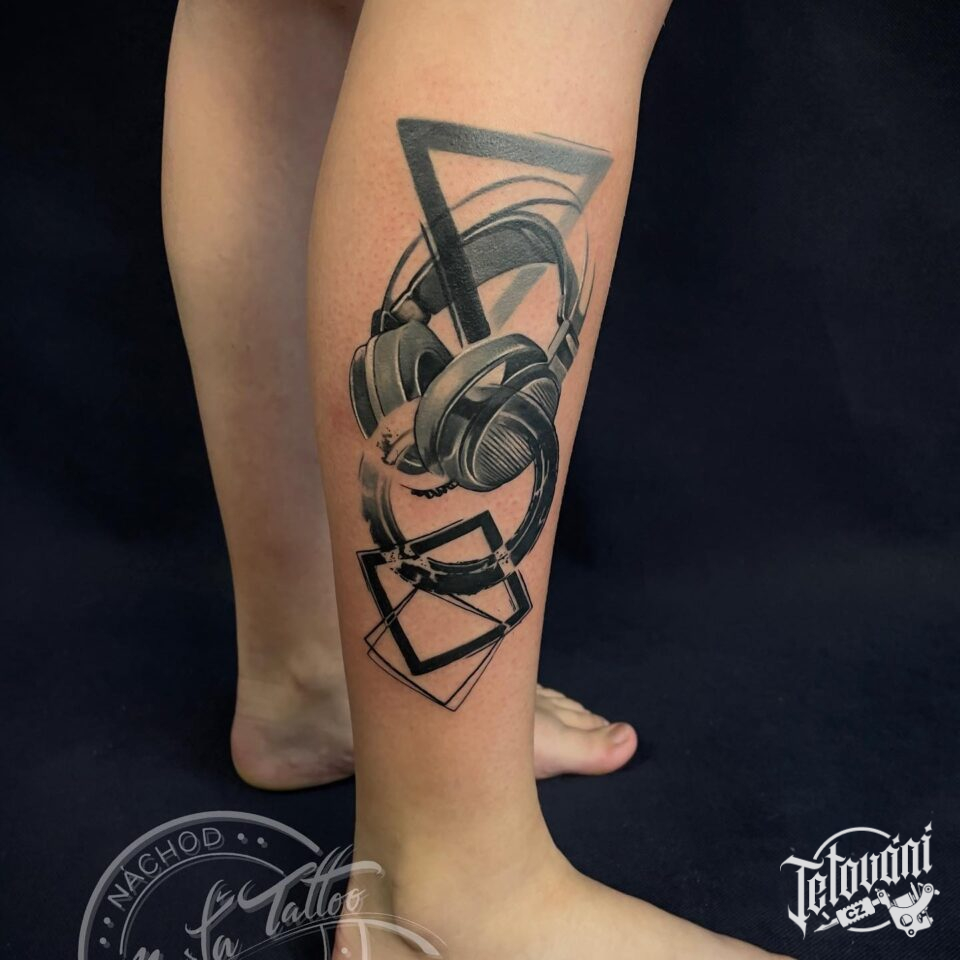 Tetování znaky a symboly, symbol hudby a tvary na lýtko