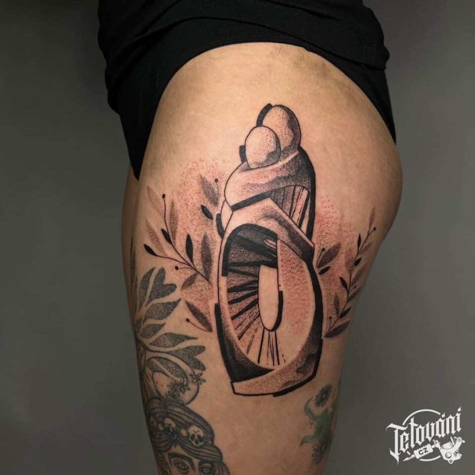 Tetování znaky a symboly, symbol lásky na bok stehna