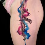 Tetování znaky a symboly, symbol ochrany, síly zbraň na bok stehna