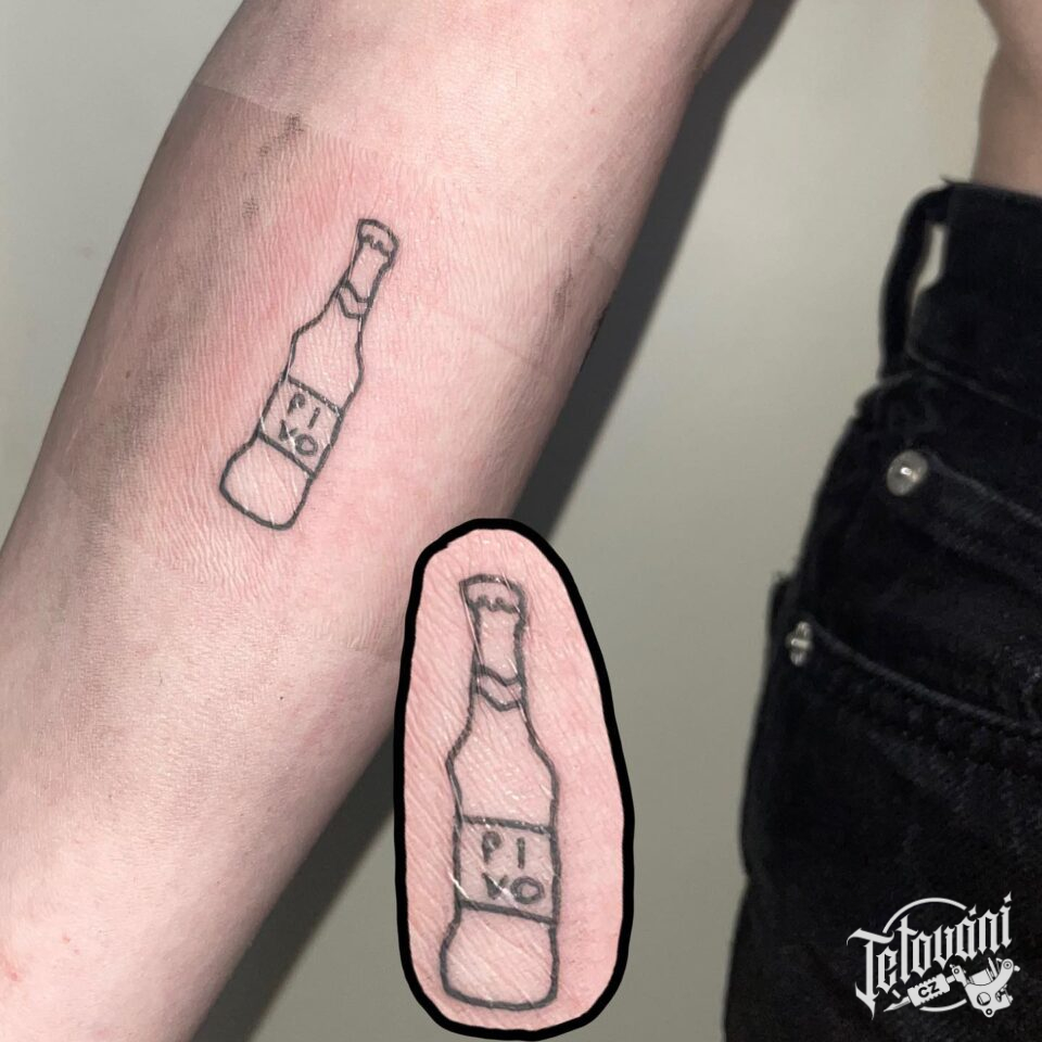 Tetování předmět, symbol, flaška piva na předloktí