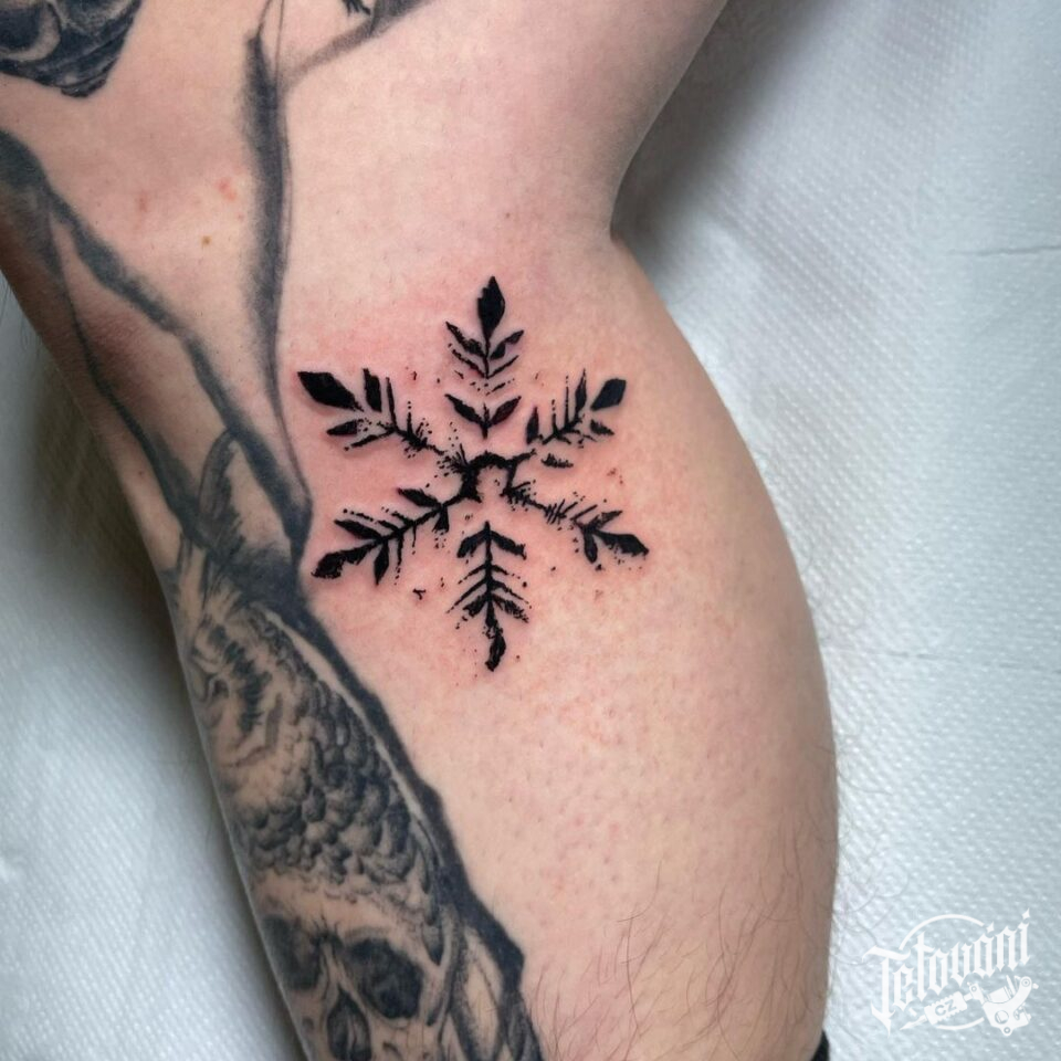 Tetování znaky a symboly, symbol sněhové vločky na lýtku