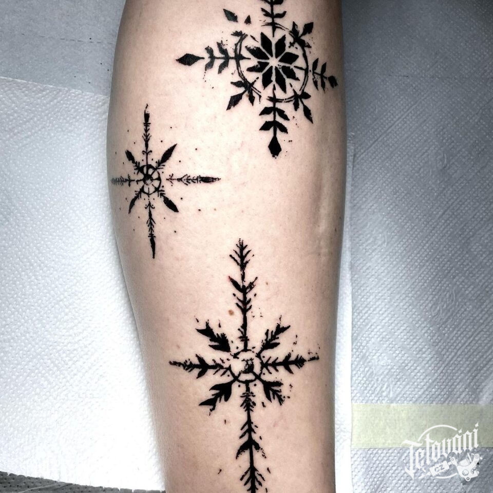 Tetování znaky a symboly, symbol sněhové vločky na lýtku