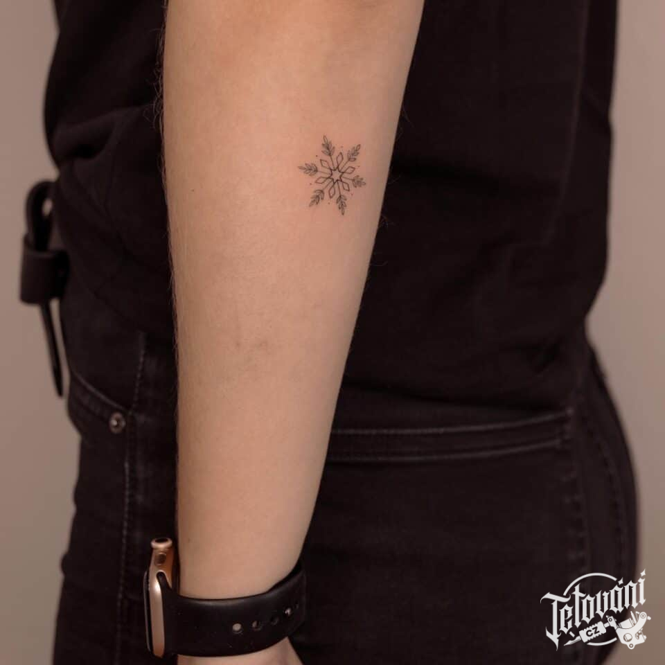 Tetování znaky a symboly, symbol sněhové vločky na předloktí