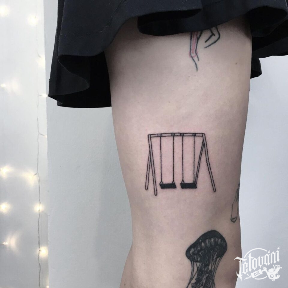 Tetování znaky a symboly, symbol štěstí, houpačka na stehhně