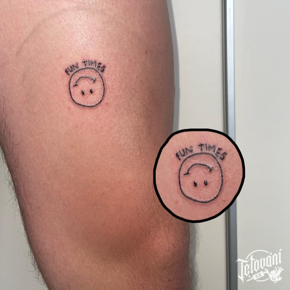 Tetování znaky a symboly, symbol štěstí s nápisem na stehně