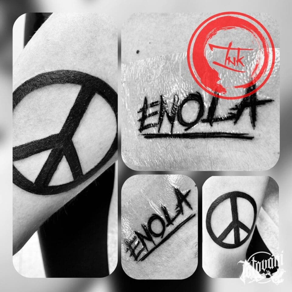 Tetování znaky a symboly, symbol svobody a nápis na ruce