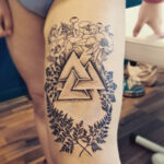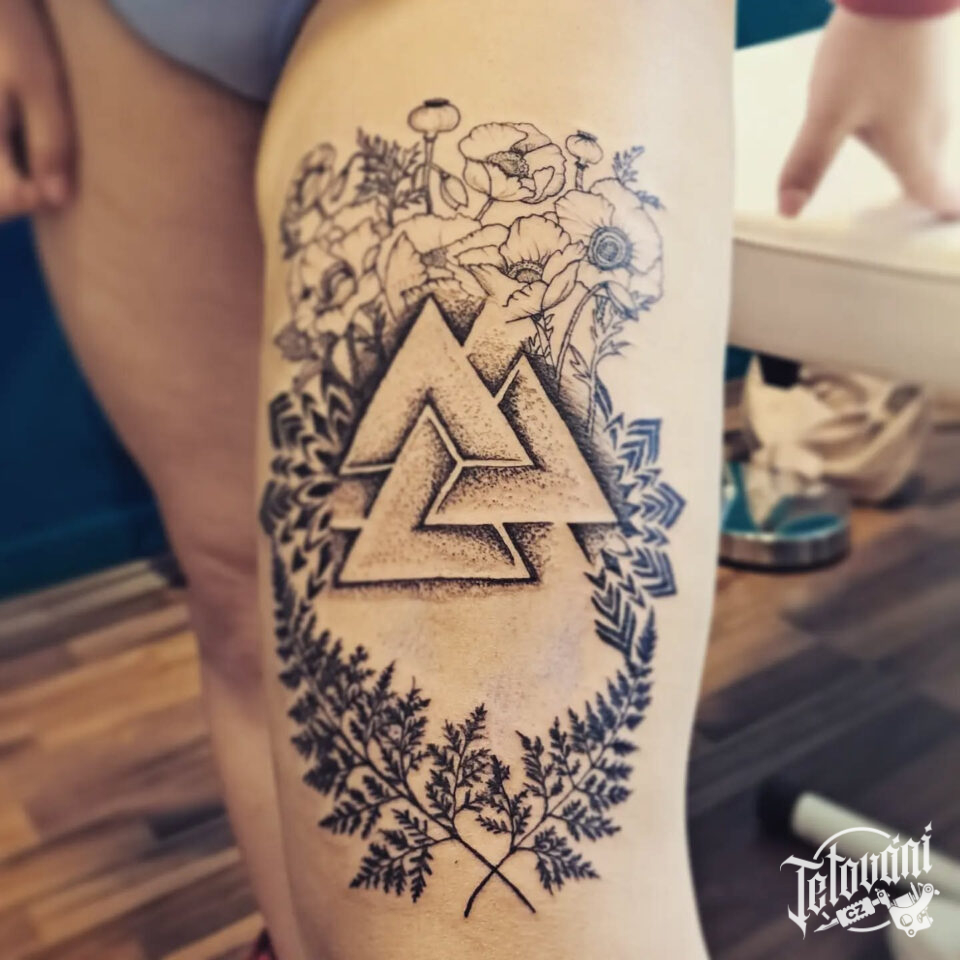 Tetování znaky a symboly, symbol Valhally, květiny na stehno