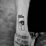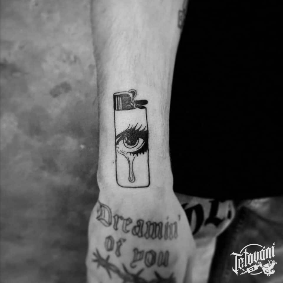 Tetování znaky a symboly, symbol zapalovač a oko na předloktí
