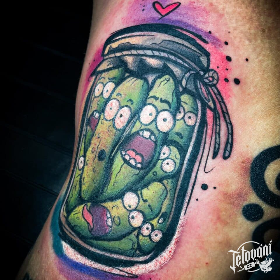 Tetování znaky a symboly, symbol zdraví, nakládané okurky na nohu