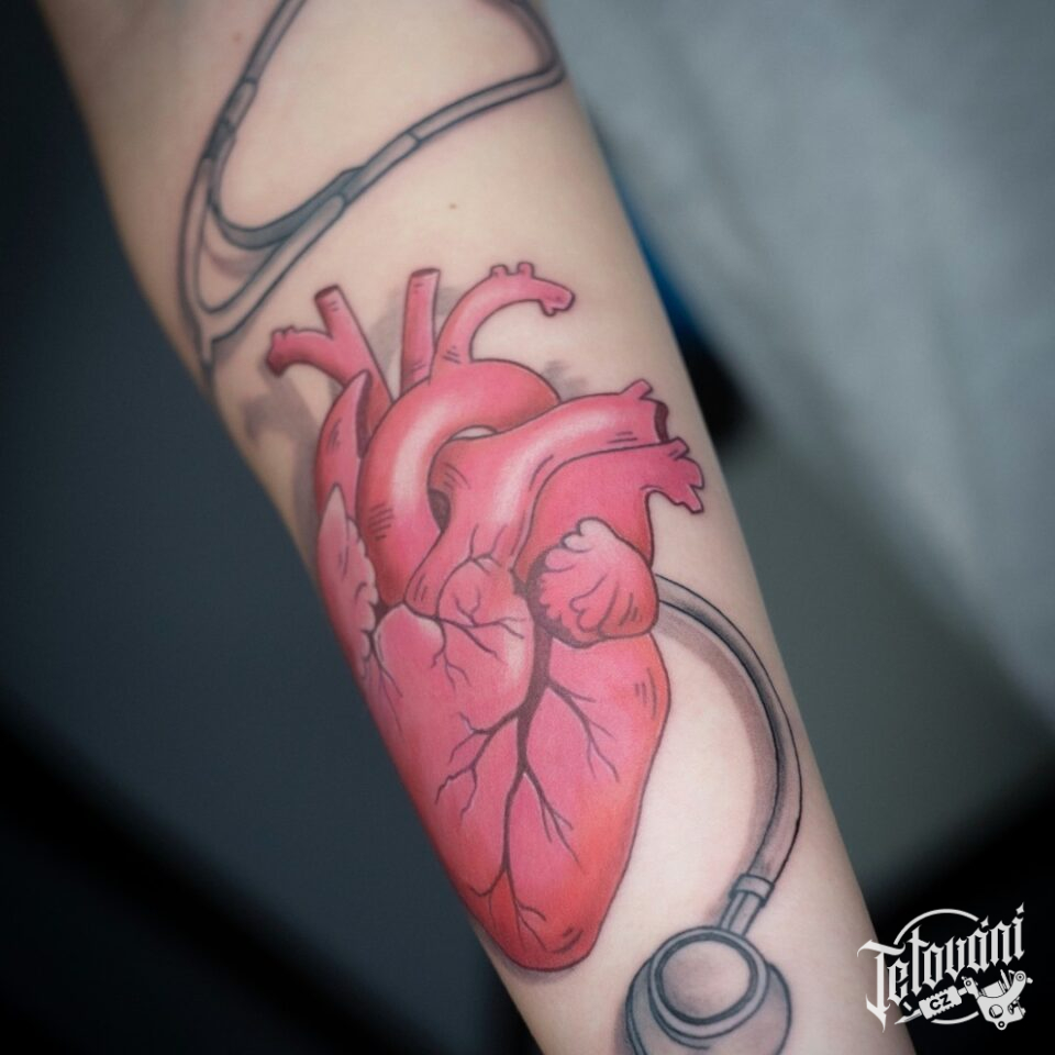 Tetování znaky a symboly, symbol zdraví, srdce na předloktí