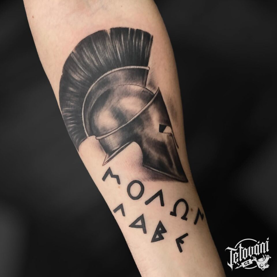 Tetování znaky a symboly, symboly a helma sparťanského bojovníka
