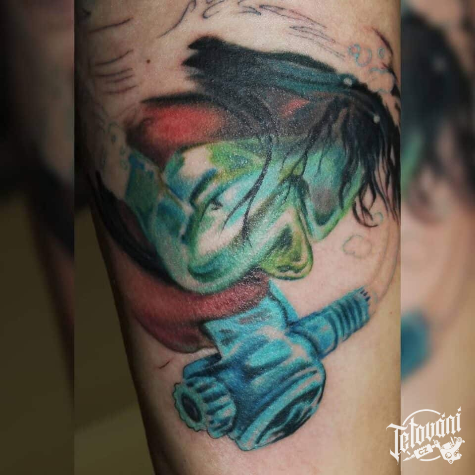 Tetování znaky a symboly, tetovací strojek na předloktí