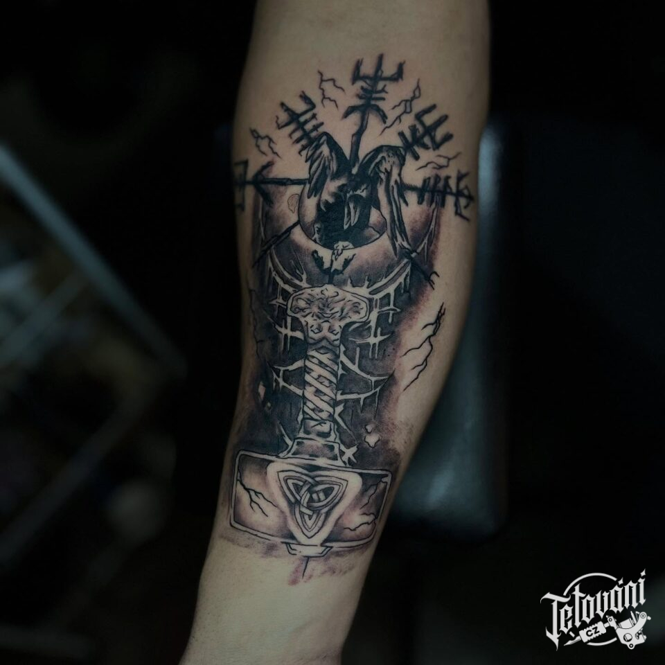 Tetování znaky a symboly, triquerta, runa ochranné symboly na předloktí