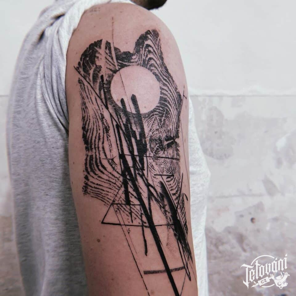 Tetování znaky a symboly, tvary, čáry na rameni