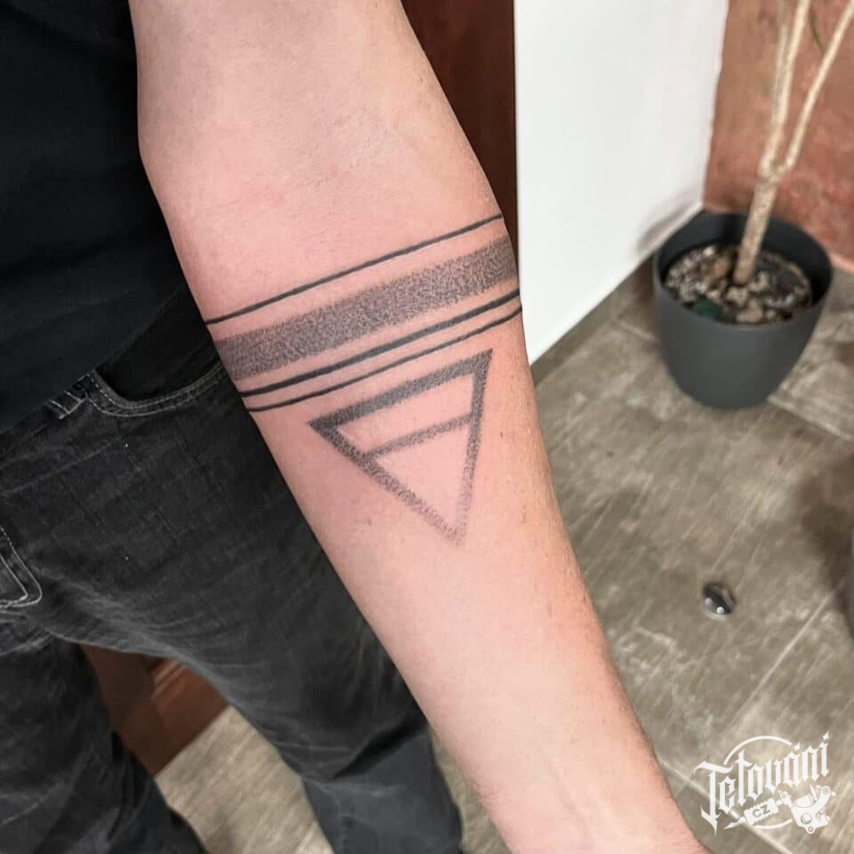 Tetování znaky a symboly, tvary, čáry, pruhy na předloktí