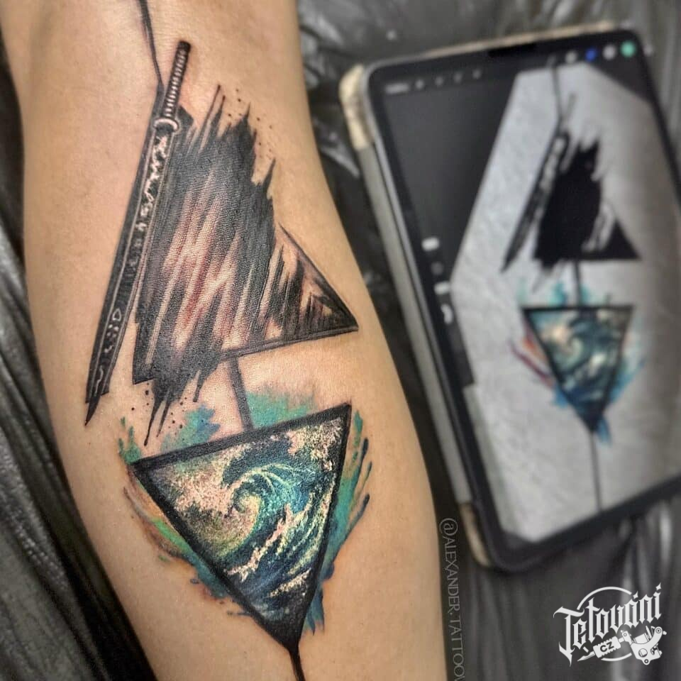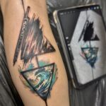 Tetování znaky a symboly, tvary, moře na lýtku