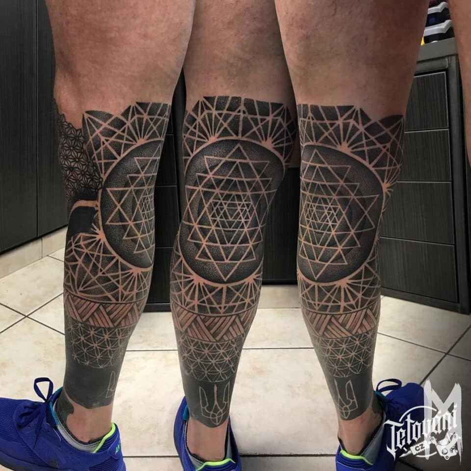Tetování znaky a symboly, tvary, ornamenty na lýtku