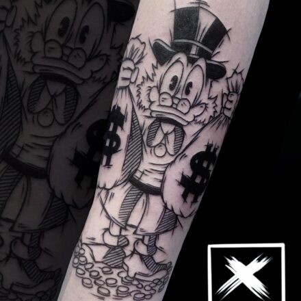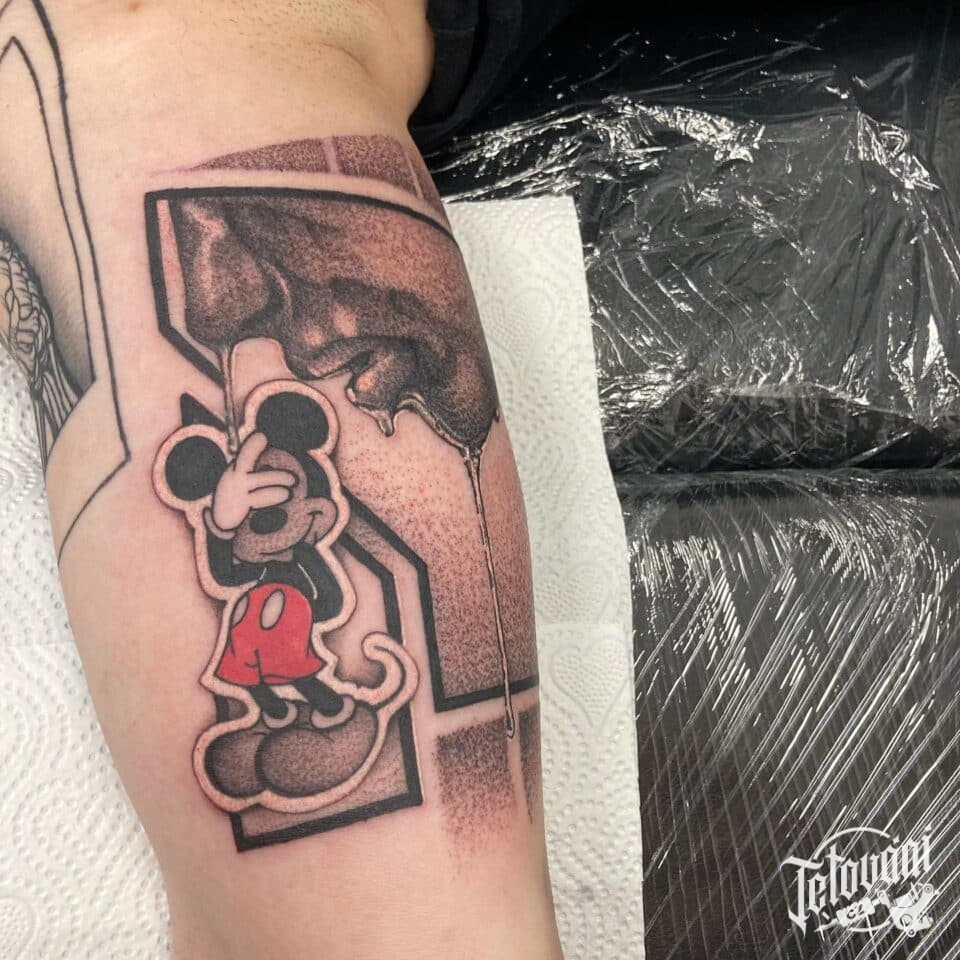 Tetování znaky a symboly, tvary, postavička Disnemy Mickey Mouse z filmů a pohádek na paži