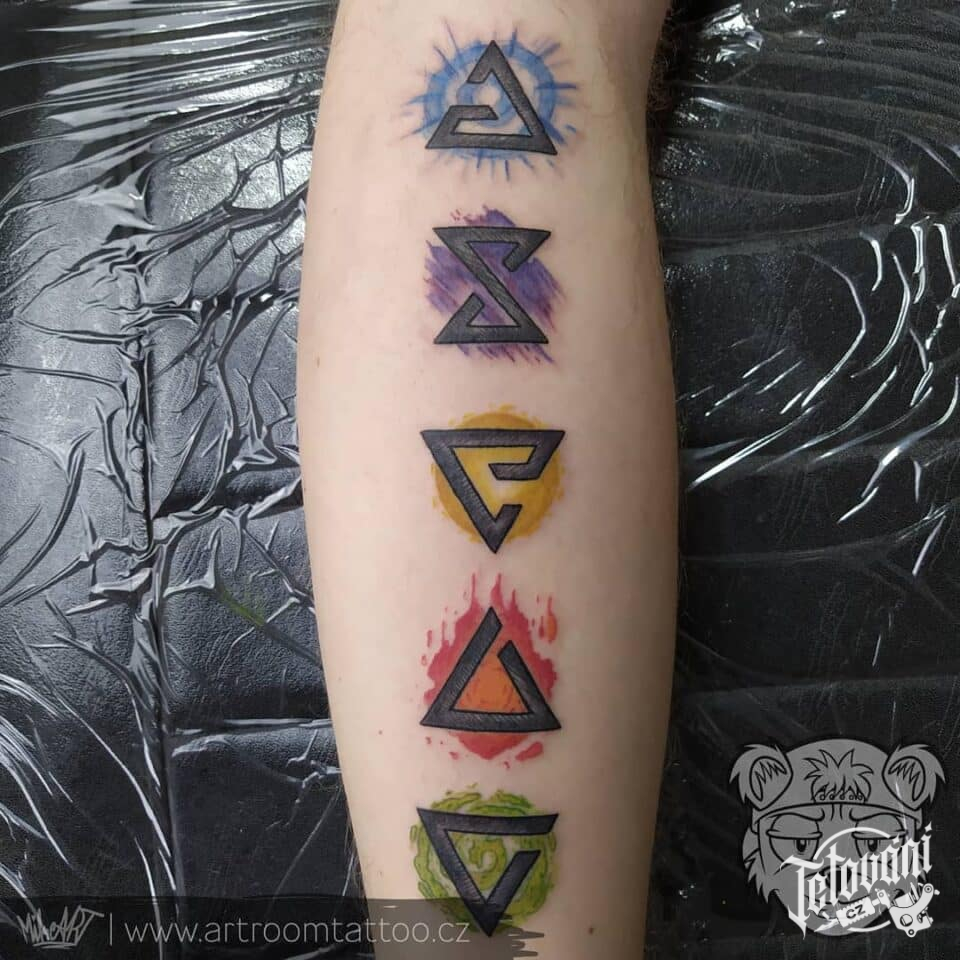 Tetování znaky a symboly, tvary, symboly ze Zaklínače na lýtku