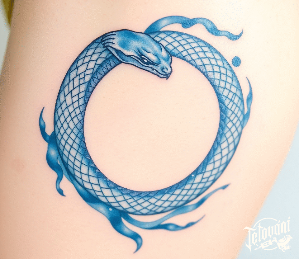 Tetování znaky a symboly, uroboros, mytologie na boku stehna
