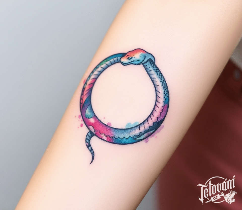 Tetování znaky a symboly, uroboros, náramek na předloktí