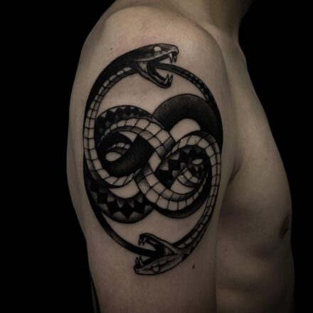 Tetování znaky a symboly uroboros, zvířata, had a náramek na rameno