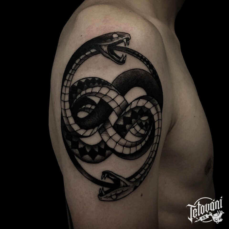 Tetování znaky a symboly uroboros, zvířata hadi na rameno