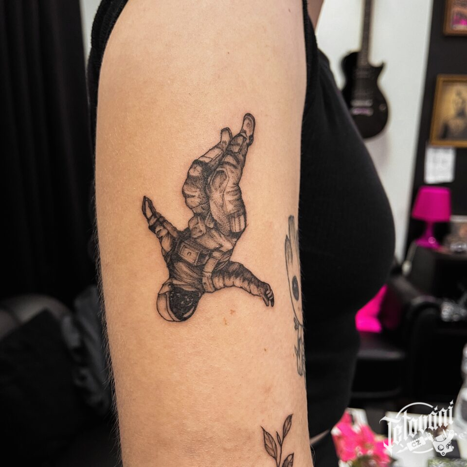 Tetování znaky a symboly vesmíru, kosmonaut na rameno