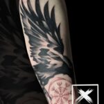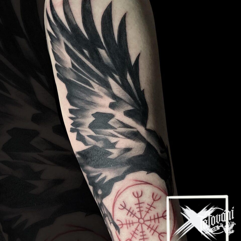 Tetování znaky a symboly Vikingů, havraní křídlo na předloktí