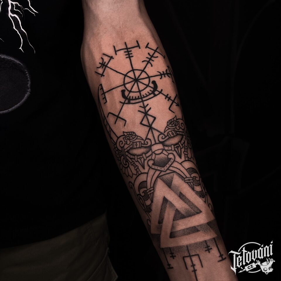 Tetování znaky a symboly vikingů na předloktí