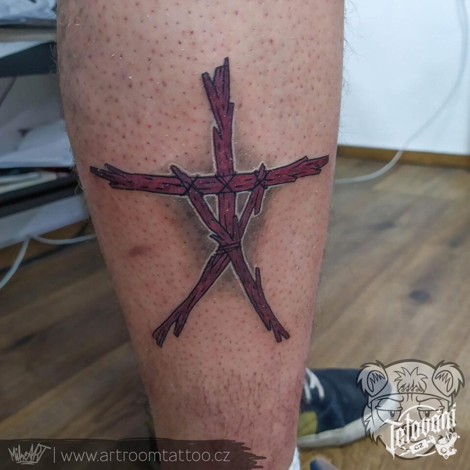 Tetování znaky a symboly z filmů a pohádek, větvičky na lýtku