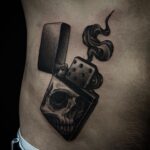 Tetování znaky a symboly, zapalovač s lebkou na bok břicha
