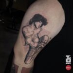 Tetování znaky a symboly, žena na bok stehna