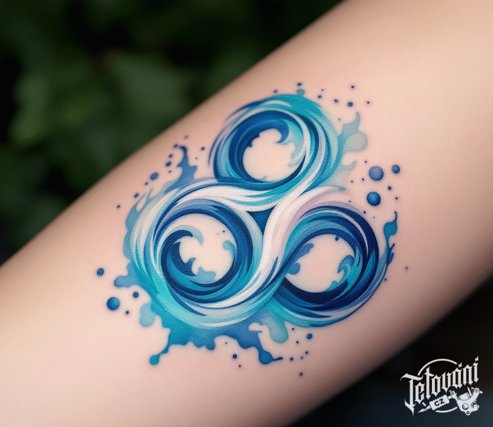 Tetování znaky a symboly, živly, vodní triskelion na předloktí