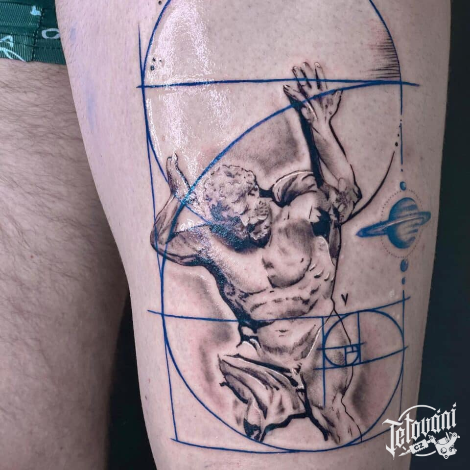 Tetování znaky a symboly života, mytologie na stehno