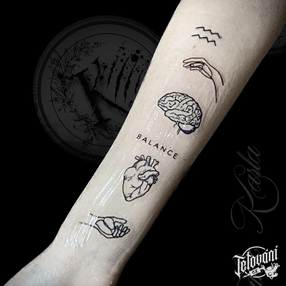 Tetování znaky a symboly života, svobody, naděje, lásky, zdraví na předloktí
