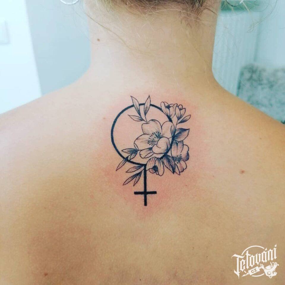 Tetování znaky a symboly, znak Ženy, květina na zádech