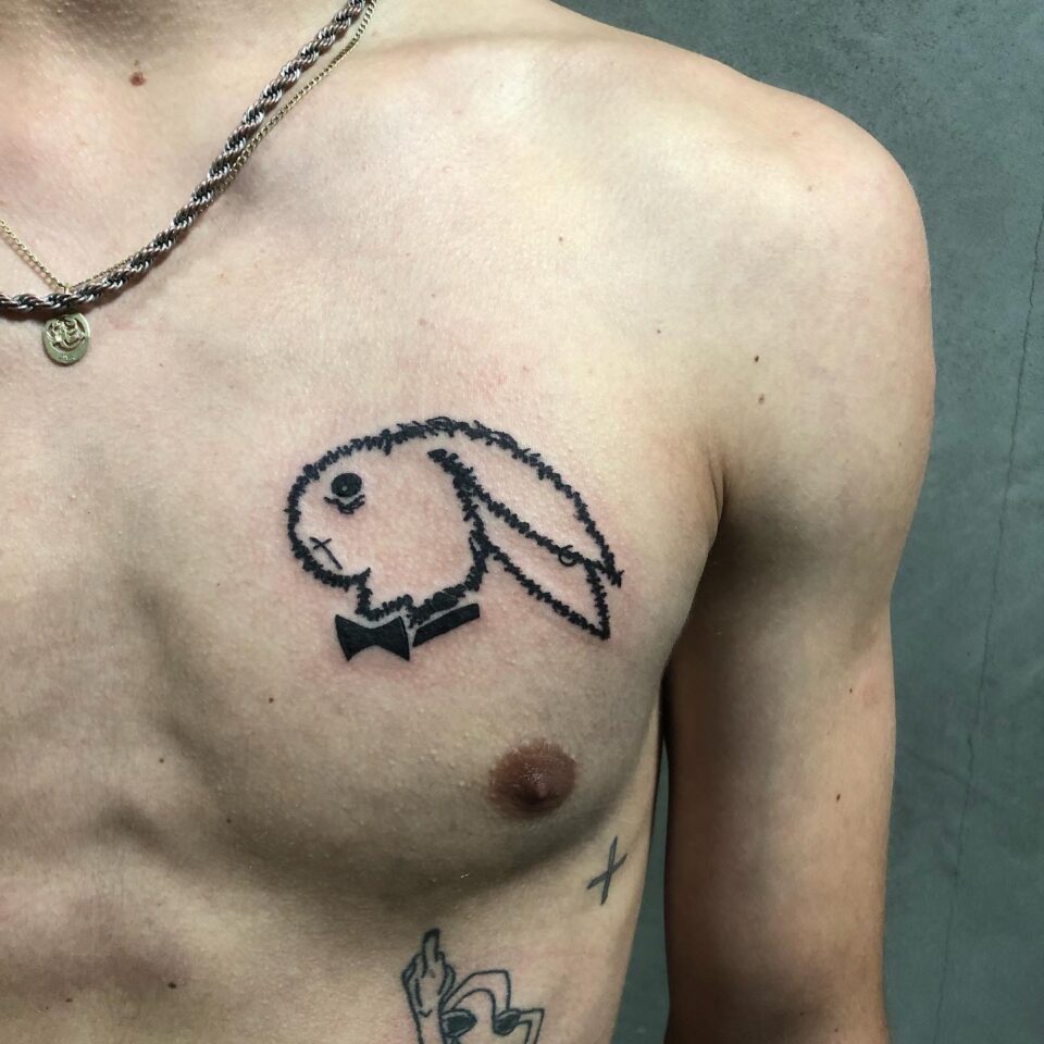 Tetování znaky a symboly, zvíře, králík na hrudi